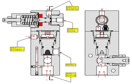 活塞式進氣閥的結(jié)構(gòu)有進氣口、閥門上蓋、活塞、底座、泄放電磁閥組成。
